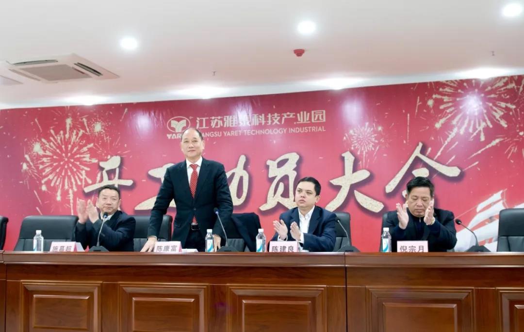 一元復始,萬象更新。2019年2月15日上午8時30分,集團與江蘇雅泰科技產(chǎn)業(yè)園分別在上海與宿遷兩地順利召開了新春開工動員大會,董事長陳康富攜集團公司總裁班子成員向參會的各部門各車間員工拜年,向大家送去新春祝福和美好祝愿。