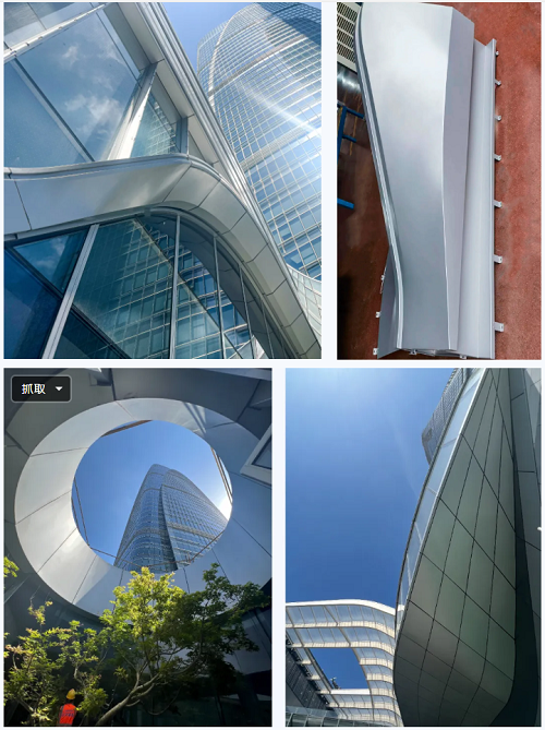 該項(xiàng)目幕墻系統(tǒng)繁多,施工難度大,制造工藝要求極高。南裙樓幕墻共計(jì)27個(gè)幕墻系統(tǒng),雅泰集團(tuán)負(fù)責(zé)其中的金屬幕墻供材,幕墻構(gòu)造上選擇的是框架式鋁板幕墻。