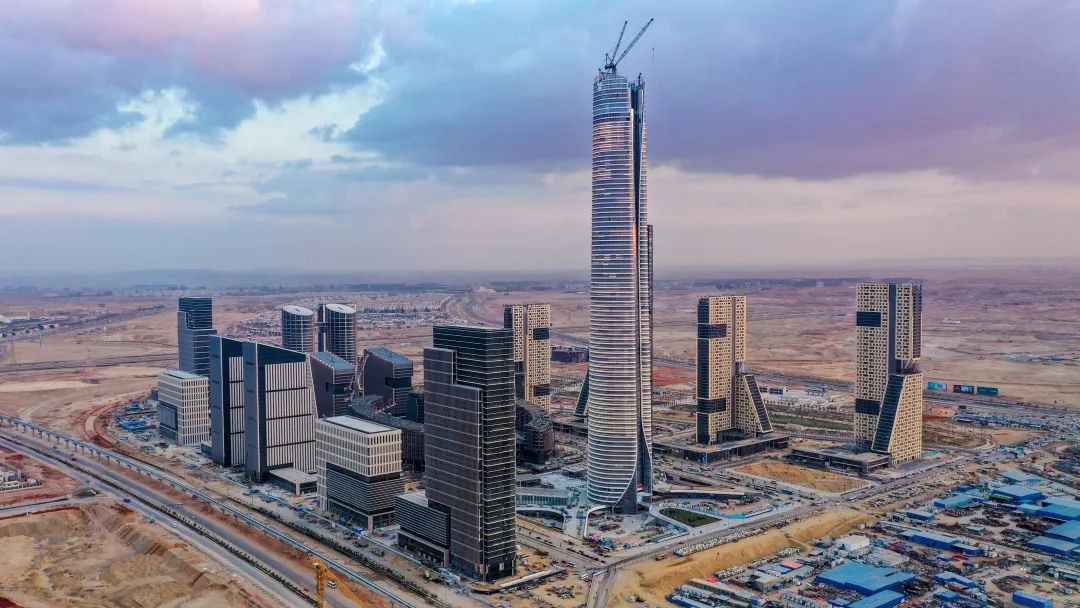 埃及標志塔(Iconic Tower)位于開羅以東約50公里的沙漠地帶,是埃及新行政首都的核心項目之一,塔高385.8米,是名副其實的“非洲第一高樓”。作為打造中埃兩國在“一帶一路”倡議下的合作典范,塔樓于2018年開工,2023年主體結構封頂,現(xiàn)已完成幕墻覆蓋,竣工在即。它被當?shù)厝俗u為“新金字塔”,象征著埃及對未來的希望和對古老文明的現(xiàn)代詮釋。